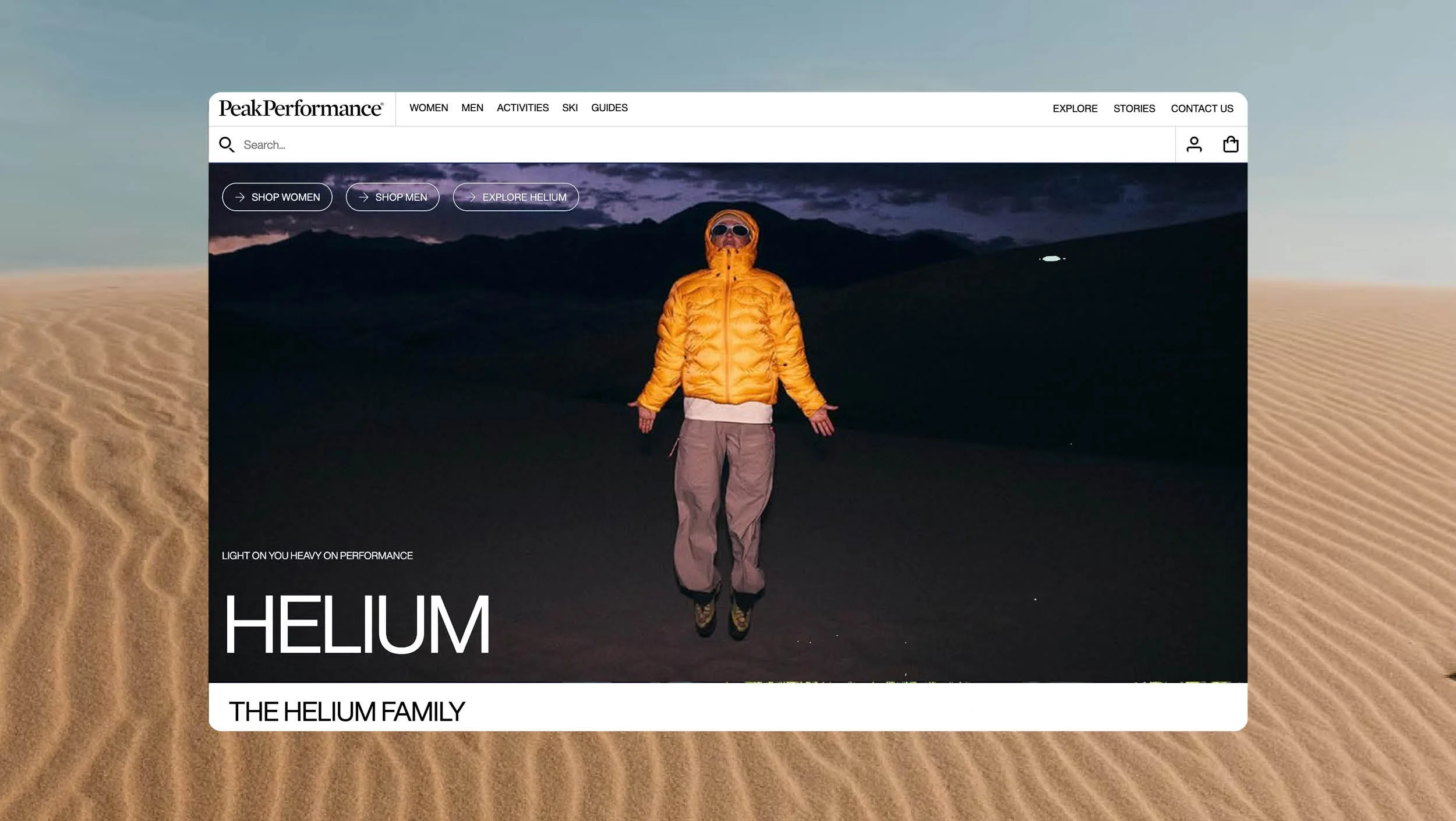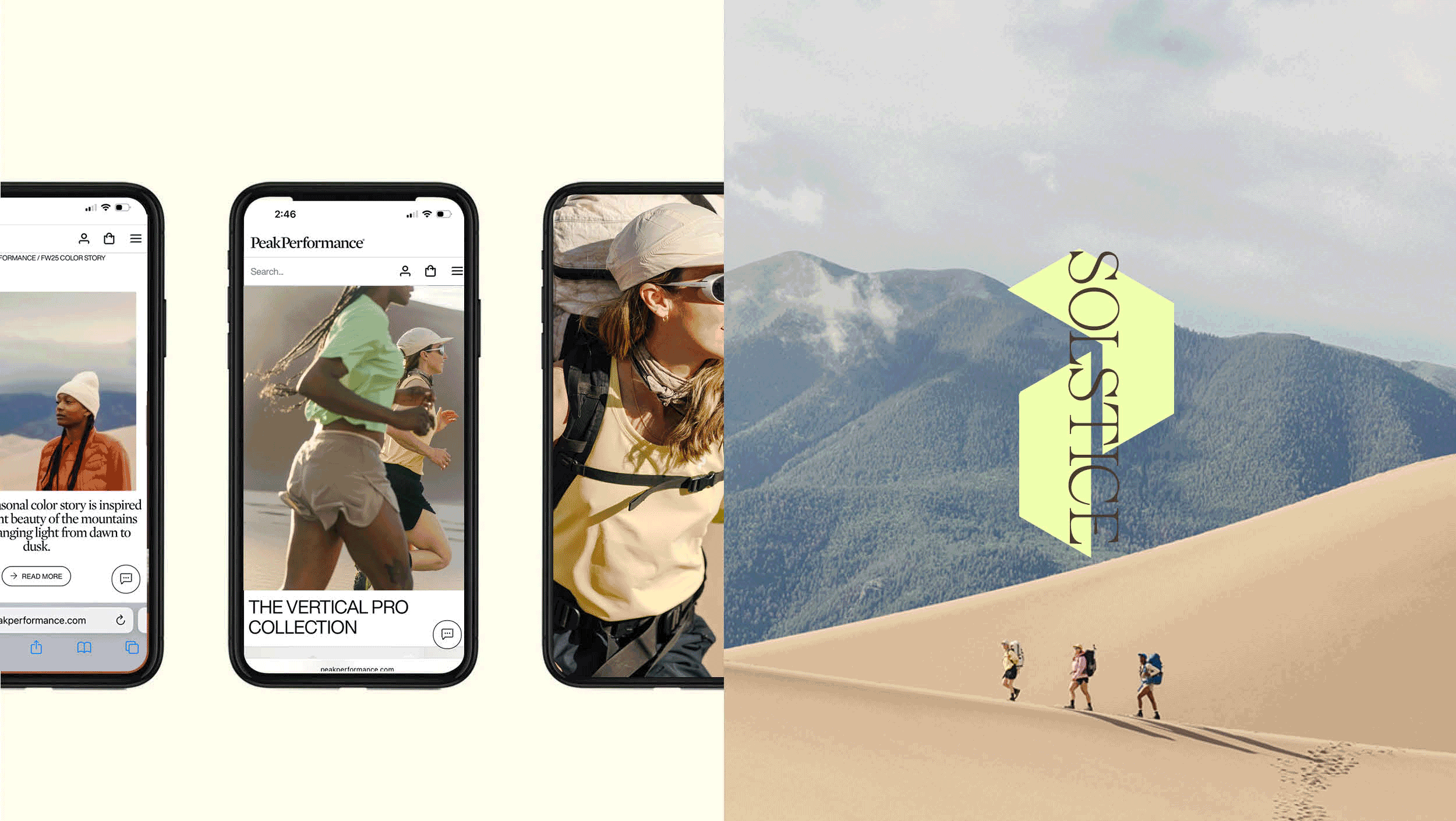 Peak Performance Spring/Summer SOLSTICE — a study in endurance, light, and elemental terrain. Set against vast sand dunes, the photoshoot took place deep into landscape to test the brand’s most resilient gear in conditions defined by heat, wind, and shifting ground. The visual narrative balanced technical performance with emotional connection, capturing both the rigor of the environment and camaraderie of shared exploration. The work introduced an expanded outdoor perspective, extending beyond the brand’s traditional technical alpine focus into versatile, all-season terrain. Through immersive storytelling and high-impact imagery, the visuals positioned Peak Performance as equally at home in stark desert light as in snow-covered peaks.